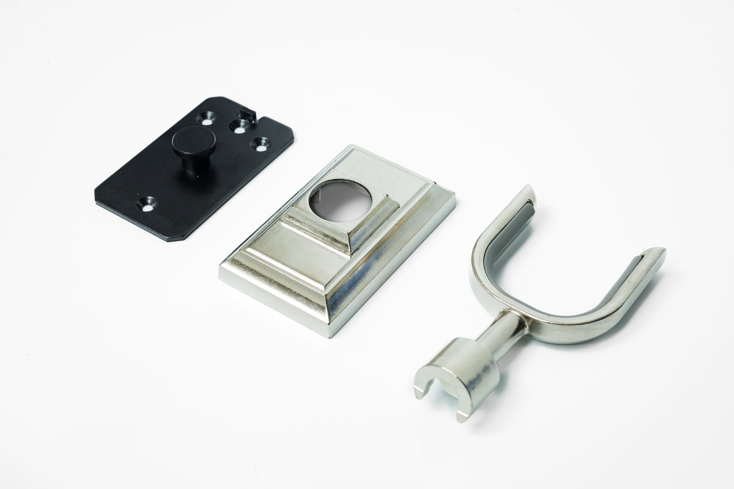Simple and clean design that feels transparent in or out of use. The only external mounting point is a small retention screw on top of the faceplate, which remains unseen at eye level and below.